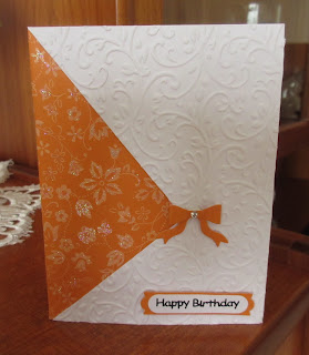 I embossed the patterned paper first before matting on to the yellow card and